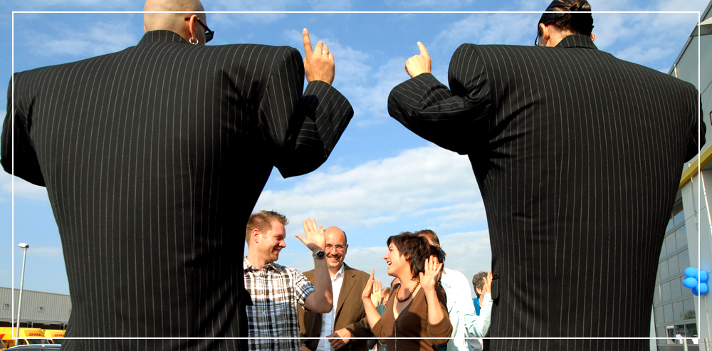 Die Gentlemen sind ein charmanter Walkact auf Stelzen, der Eleganz und Humor verbindet. Ohne zu sprechen, aber mit viel Ausdruck, begrüßen sie Ihre Gäste, begleiten sie durch den Einlass und sorgen für überraschende Momente. Mit ihrer imposanten Größe, ihrem stilvollen Auftreten und ihrem feinen Spiel mit dem Publikum schaffen sie eine einzigartige Atmosphäre – dezent, witzig und sympathisch.