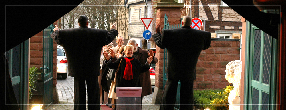 „Wir dürfen Ihnen und ihrem Team ganz herzlich für das gelungene Mitwirken an unseren diesjährigen Regional-Abenden danken, bei denen es galt, insgesamt 400 hochrangige Gäste aus Politik und Wirtschaft zu informieren und zu verwöhnen. Sie haben es verstanden, professionell und dezent unsere Gäste in eine positive Stimmung zu versetzen und sie zum Lachen und Schmunzeln zu bringen. Auftritt und Kostüm der Gentlemen haben unsere Abende abgerundet und die richtige Portion Spaß in den Informationscharakter der Veranstaltung gebracht.“